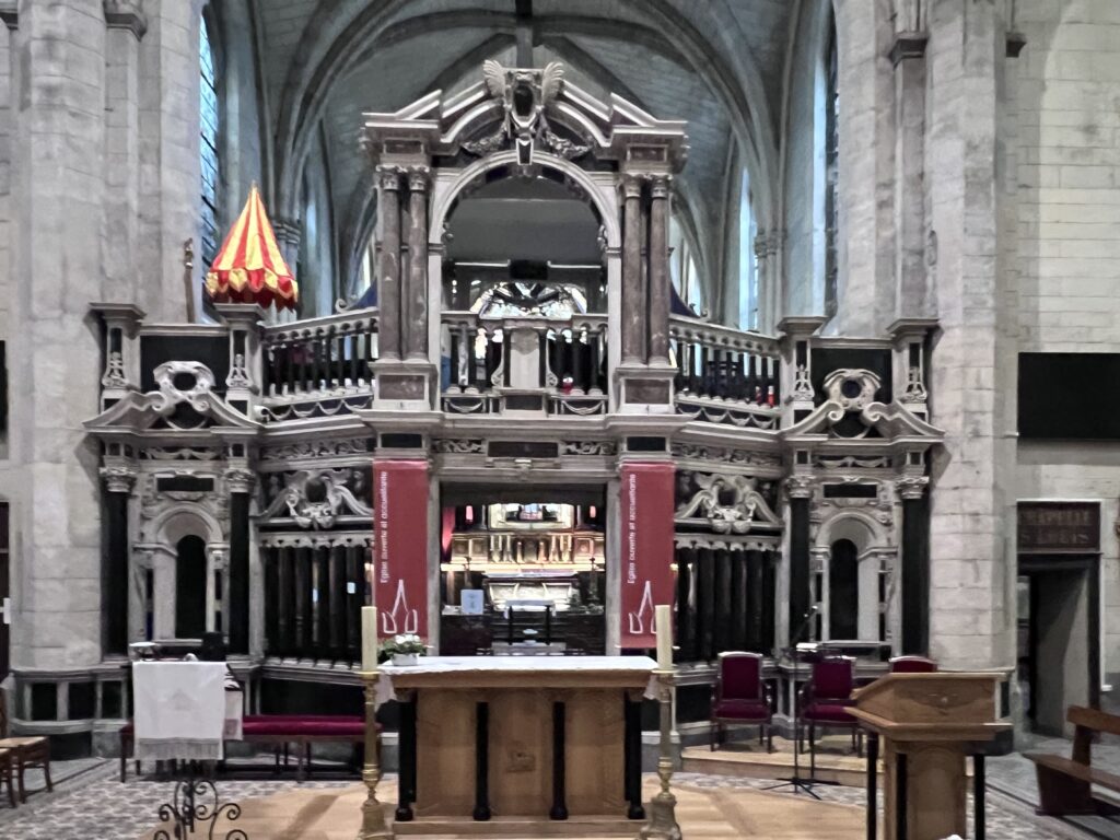 Het grote oksaal, halverwege de kerk, is in 1616 gebouwd.