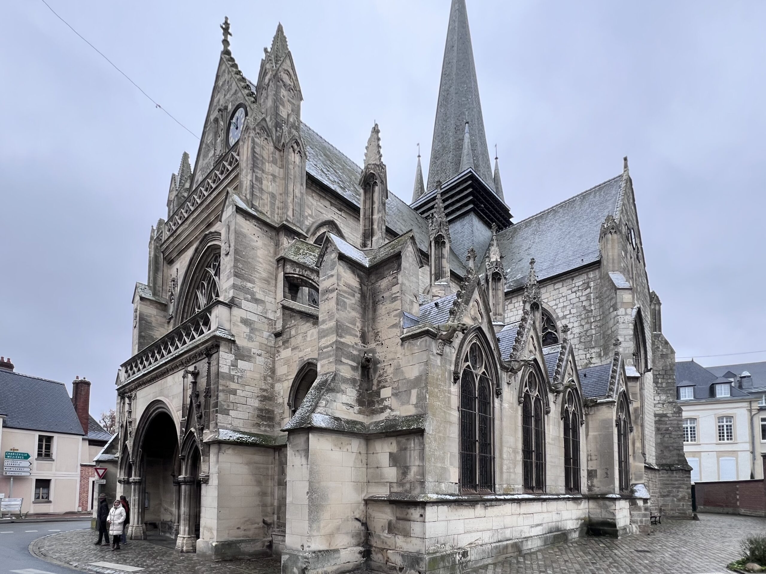 Bij binnenkomst in de basiliek zie ik een schip aan het plafond hangen. Ik verneem dat dit vaartuig in 1692 is geschonken door de admiraal van Tourville, ridder van Malta. Hij heeft aan Onze-Lieve-Vrouw van Liesse gevraagd hem te beschermen tijdens een zeeslag en hij heeft het gevecht overleefd.