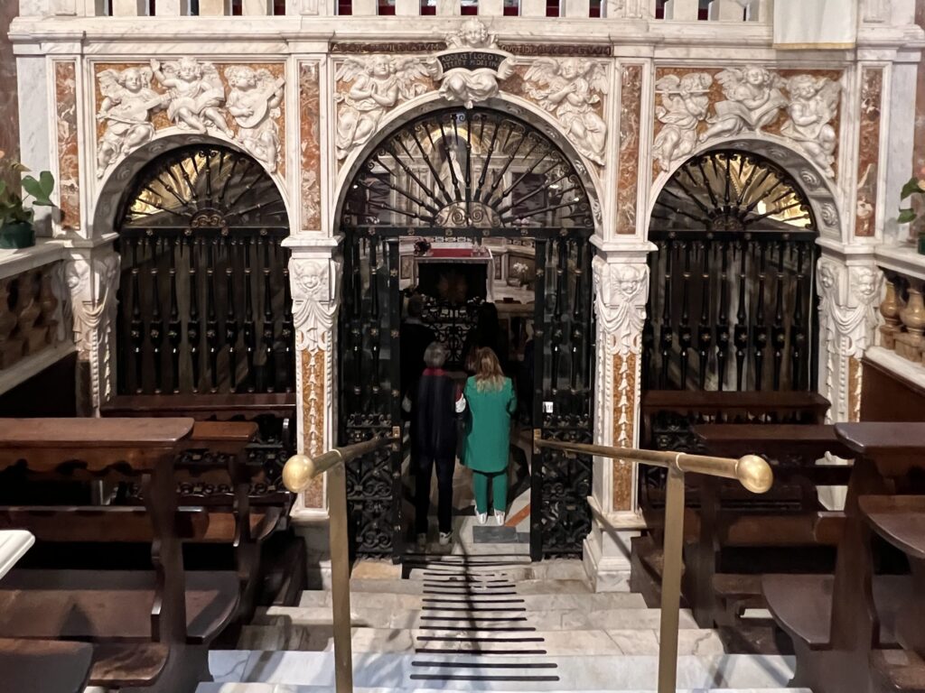 Heel apart is de crypte onder het priesterkoor. Daar ben ik in het meest relevante deel van dit gebouw. Een groot Mariabeeld verwelkomt me en dat raakt het hart. Het is een grote beeltenis van de verschijning in 1536.