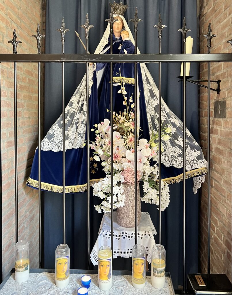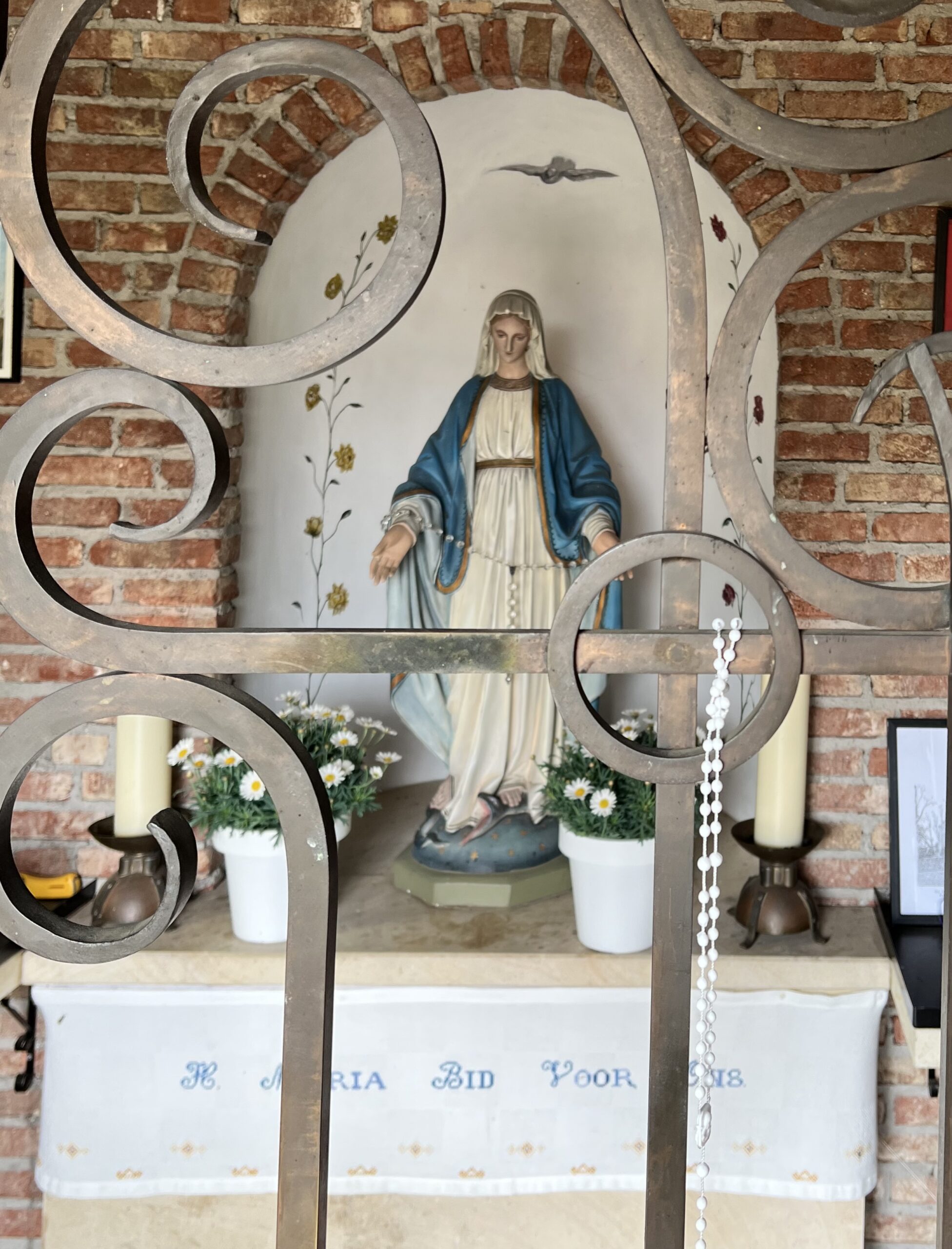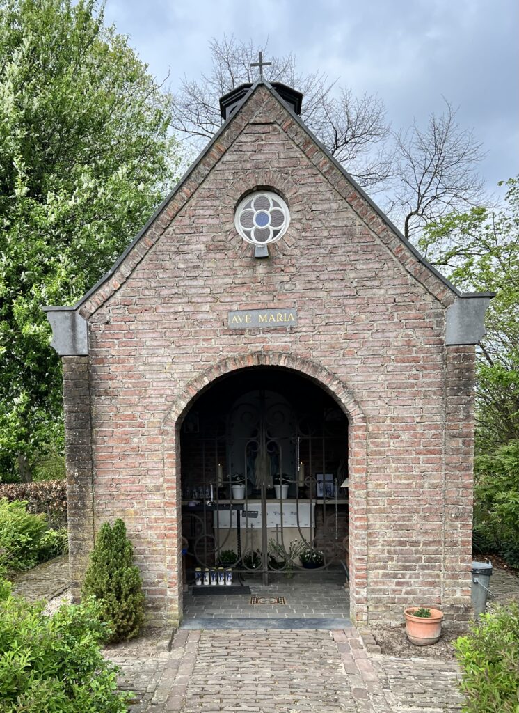 Daarna ga ik naar de kapel en zie het beeldje van Onze-Lieve-Vrouw. Wat is dit een goed onderhouden kapel! Daar is het moment tot Maria te bidden en mijn gedachten te laten gaan naar de strijd die hier heeft gewoed in de 16e eeuw.