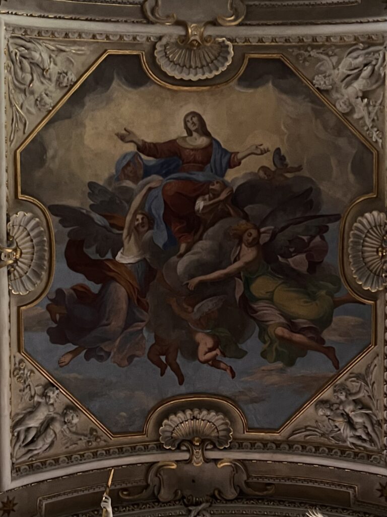 plafondfresco van de Tenhemelopneming van Maria in de bedevaartkerk te Morbio Inferiore
