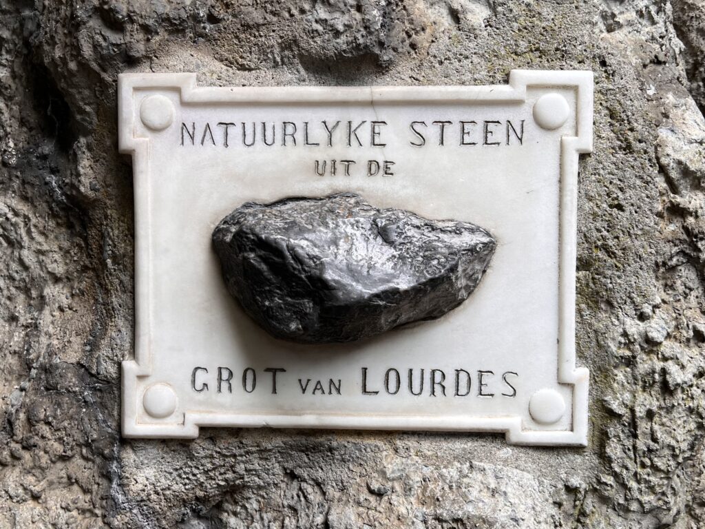 steen tegen de wand van de Lourdesgrot te Katwijk