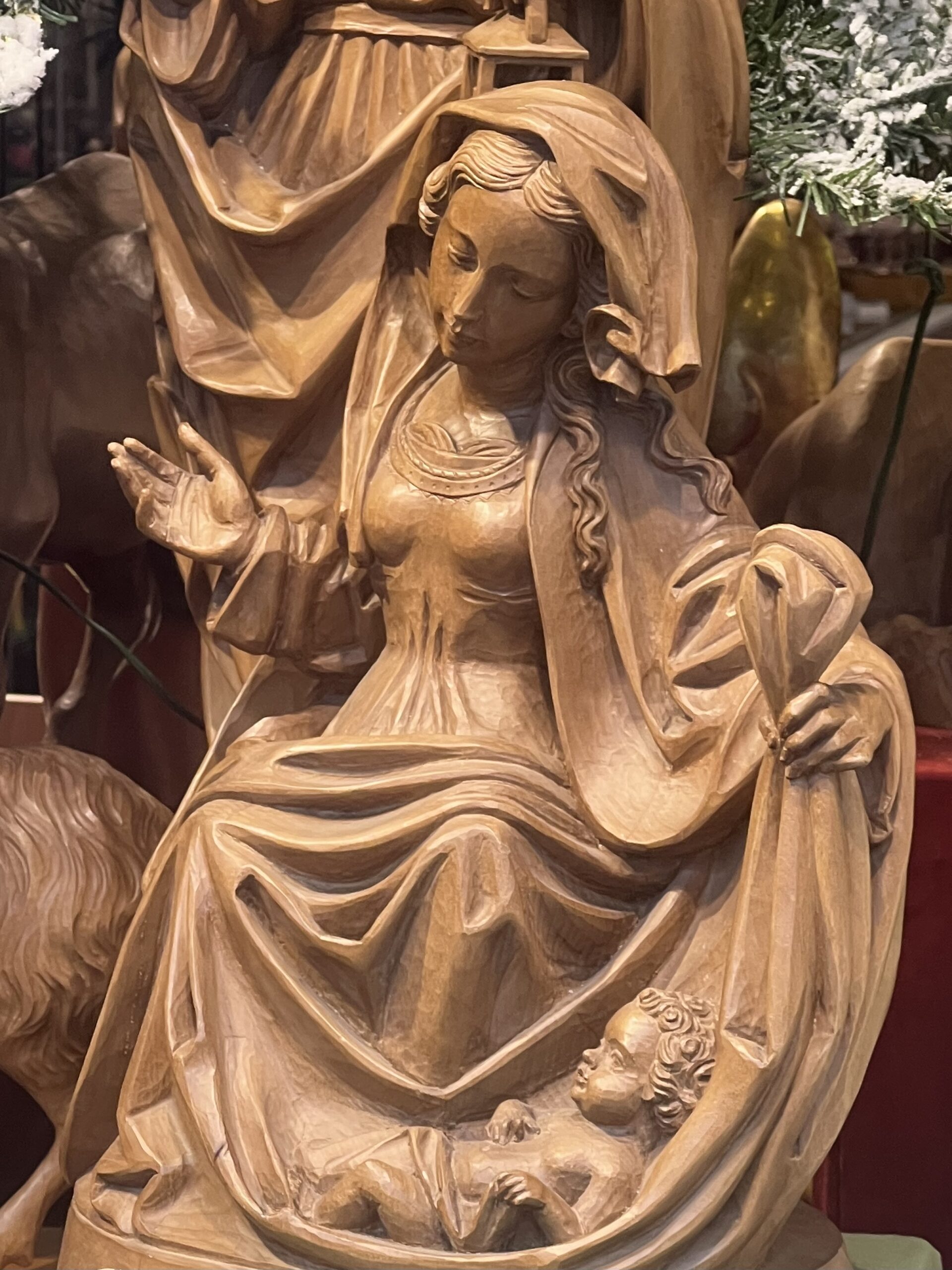 Wat me aanspreekt bij het zien van een afbeelding van Maria in een kerststal is de eenvoud en de boodschap die daarbij tot me doordringt. Ik zie de Moeder Gods geknield of zittend bij de kribbe. Haar blik is gericht op de kleine die zij zojuist heeft gebaard. Haar moederlijke liefde is niet alleen zichtbaar, maar ook voelbaar. Naar dit tafereel in de kerststal kan ik lang kijken en allerlei gedachten zoals moederschap, vrede en goed zijn voor de anderen komen in me op. Ik voel me bevoorrecht dit te mogen ervaren.