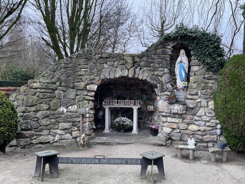 De eerste Lourdesgrot te Rijsbergen is gebouwd in 1938 en afgebroken in 1999. Het verwijderen van de grot komt door het verwezenlijken van een gemeenschapshuis. De voormalige grot is er gekomen op initiatief van Christiaan Govardus Jozef Verbunt (1878-1963), pastoor te Rijsbergen (1926-1947) en ereburger van deze plaats. Deze pastoor richt de bedevaart op van Katholiek Nederland naar Lourdes. Ook is pastoor Verbunt de initiator van de 11 Maria-kapelletjes te Rijsbergen. Pastoor Verbunt is dan ook een groot stimulator van de Mariadevotie.