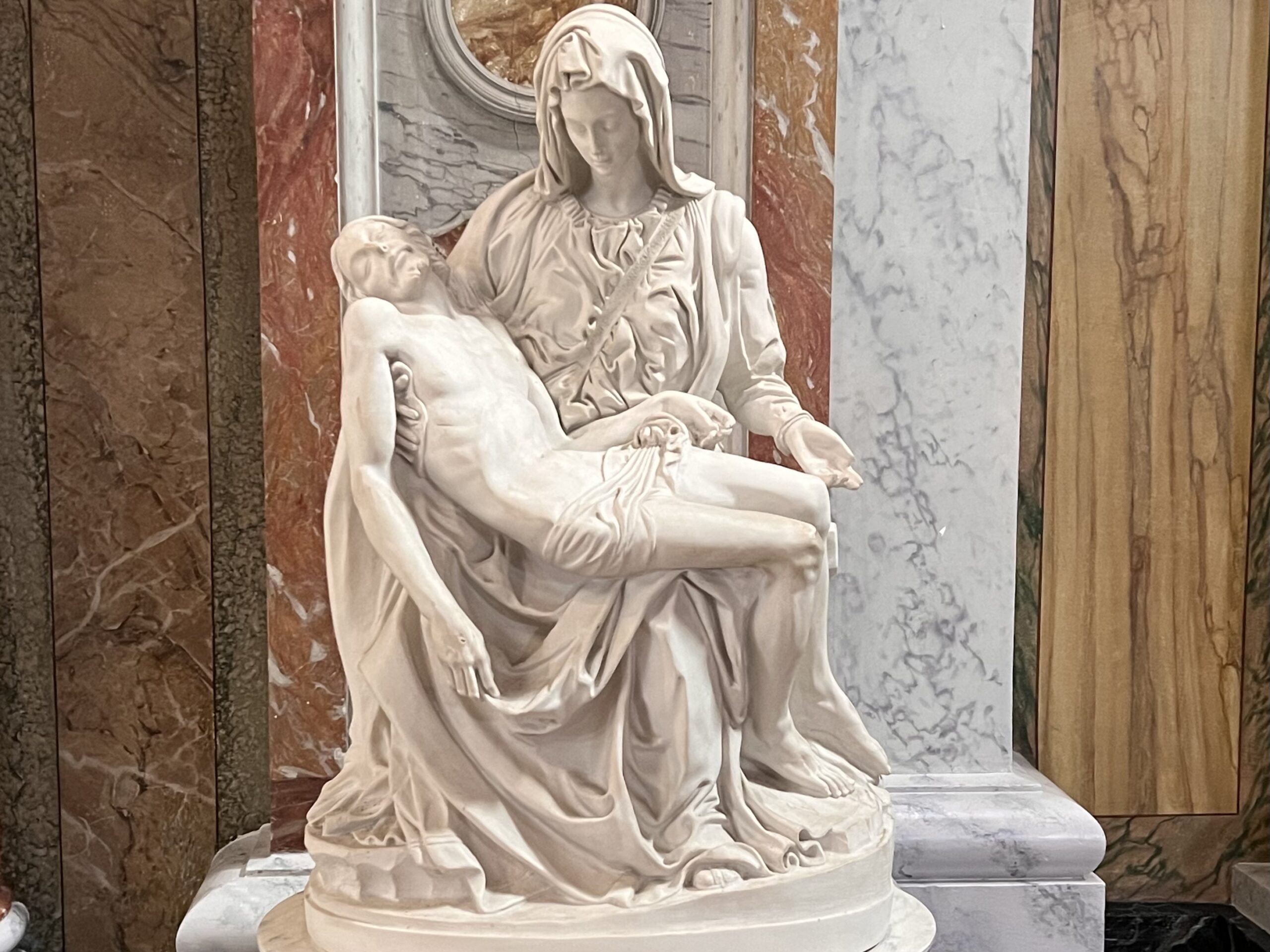 Door het vesperbeeld wordt het bekende Marialied “Stabat Mater” realiteit. Angst, bezorgdheid, ellende, lijden en pijn houden Maria vast. Haar hart wordt met smart doordrongen.