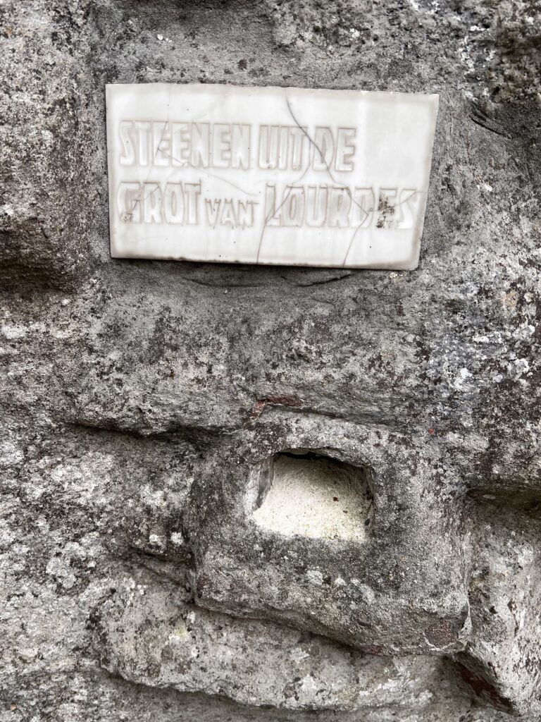 de steen uit Lourdes is verdwenen uit de rots van de grot te Weebosch