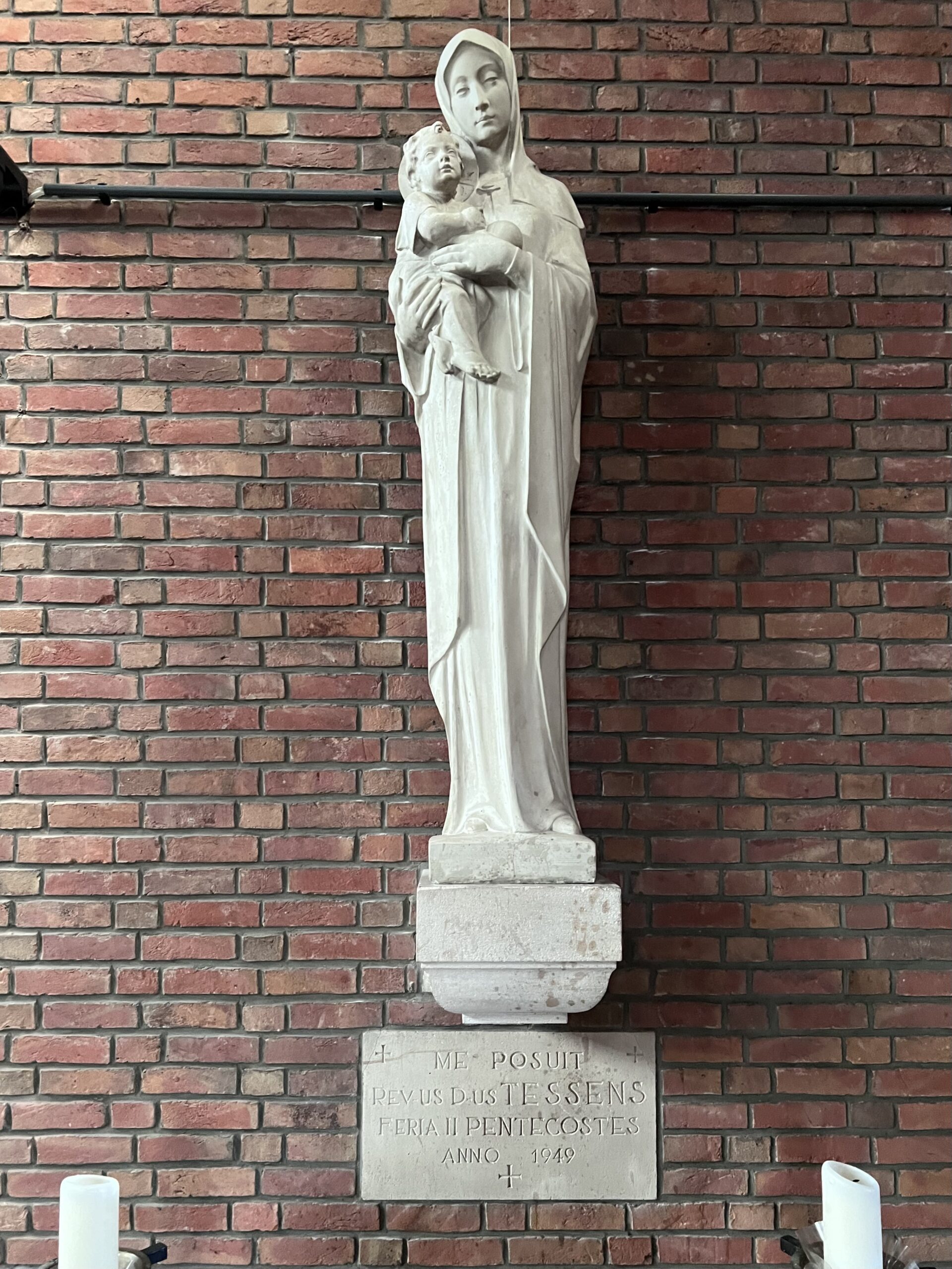 Maria met Kind met eronder een Latijnse tekst in de Sint-Jan de Doperkerk te Wildert